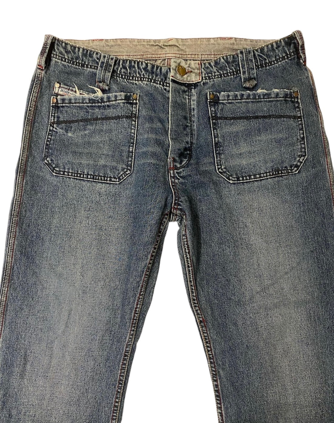 Vintage washed blue denim jeans with double pockets